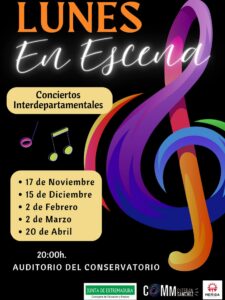 A lo largo del año, se llevarán a cabo 5 conciertos interdepartamentales en el Auditorio del Conservatorio “Esteban Sánchez” donde el público asistente podrá disfrutar de la diversidad de especialidades instrumentales de nuestros alumn@s.