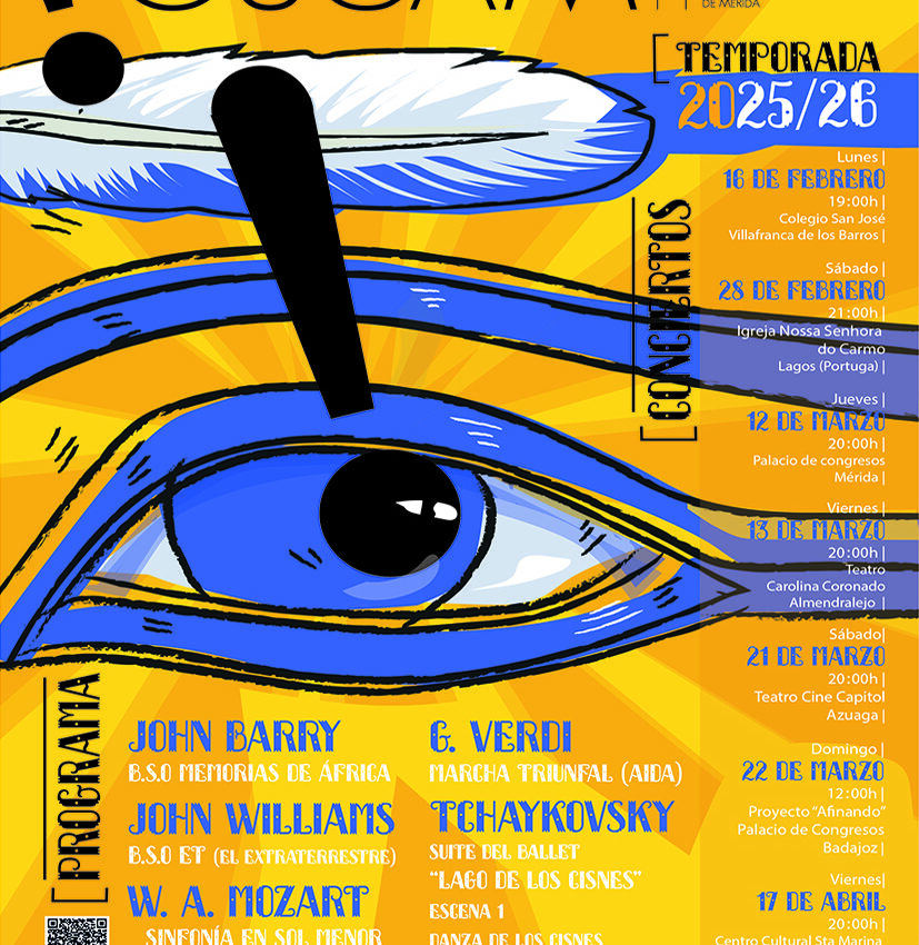 Arranca muy pronto la nueva temporada de la orquesta OSCAM, el proyecto de la orquesta sinfónica de los conservatorios Tomás Bote de Almendralejo y Esteban Sánchez de Mérida llevará de gira al alumnado de ambos centros a actuar en escenarios de Villafranca de los Barros (este próximo lunes 16 de febrero), para después pasar por Lagos (Portugal), Mérida, Almendralejo, Zafra, Azuaga y Badajoz, e interpretarán obras de J. Barry, J. Williams, W. A. Mozart, G. Verdi y P.I. Thaikovsky. Una experiencia única de trabajo, aprendizaje y convivencia en una orquesta sinfónica al alcance de nuestr@s chic@s. No os lo perdáis!![]()